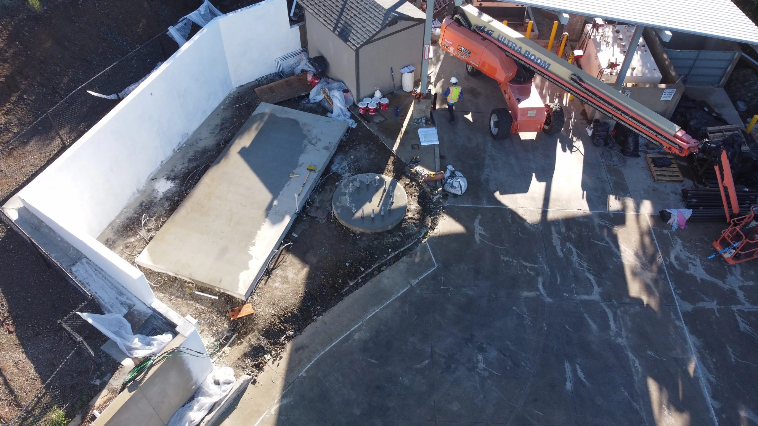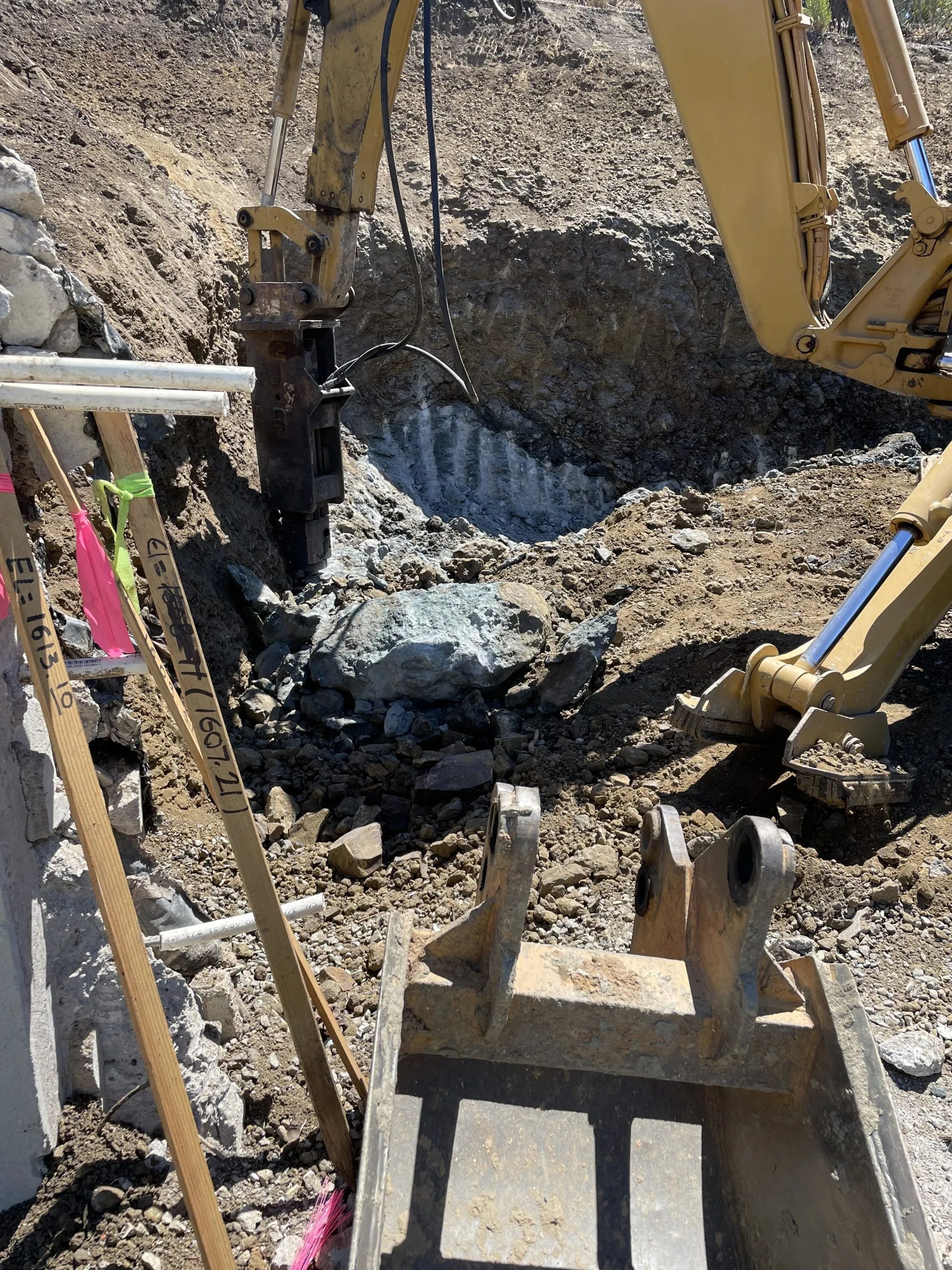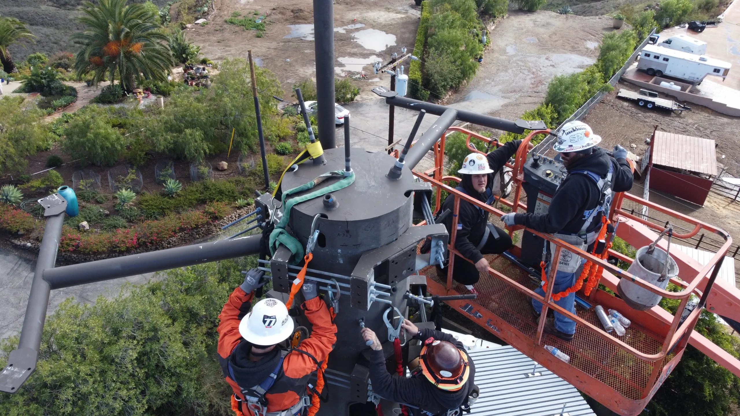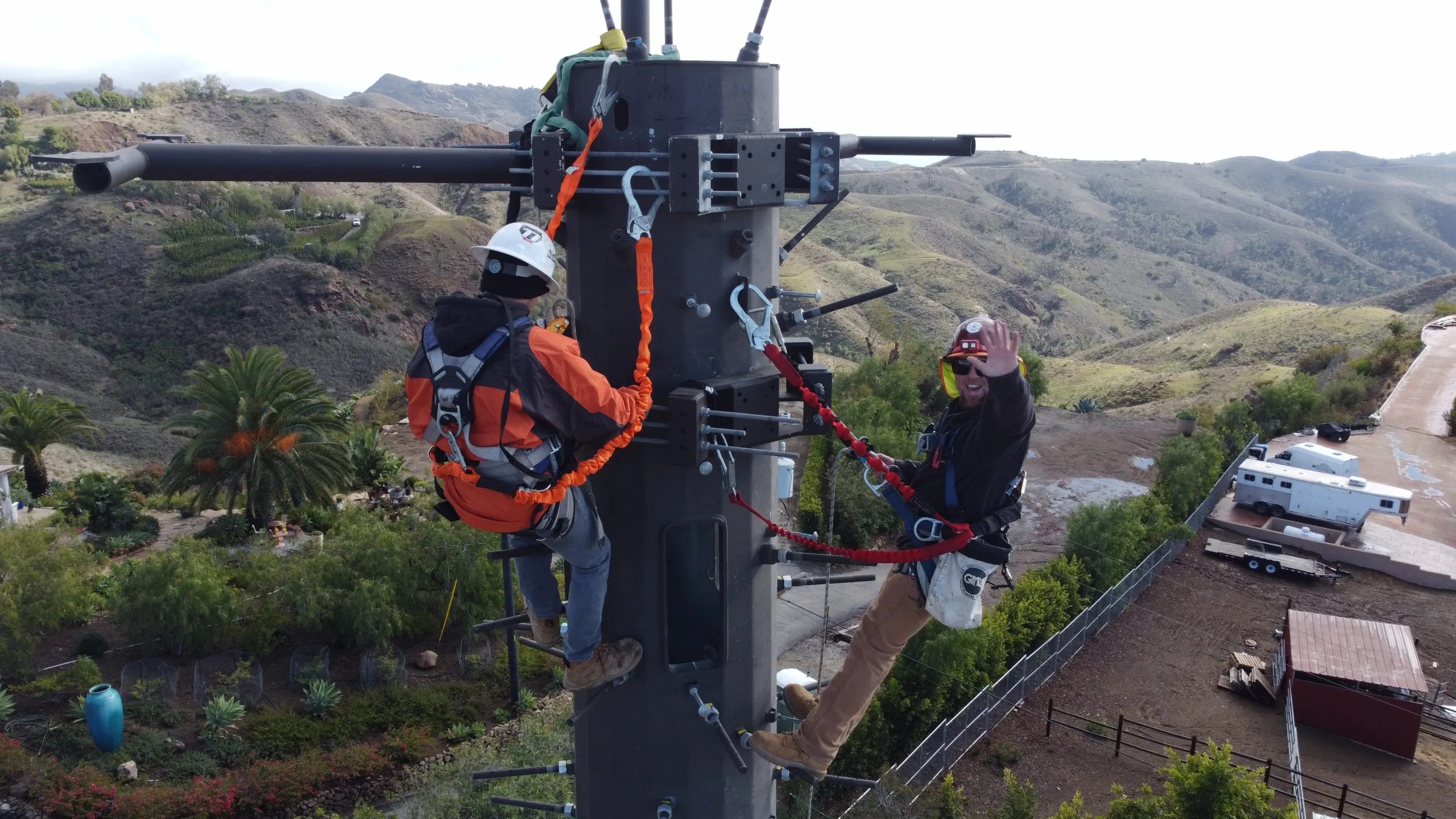 A new 70 ft tall MonoPine communications tower and prefabricated equipment shelter built into a very rocky hillside in the back of LA County Fire Station 72 in the hills above Malibu, this project challenging because it required us to cut into solid rock to accommodate the new facility and then drilling over a course of 6 weeks a hole at 8’ wide and 36 feet deep.